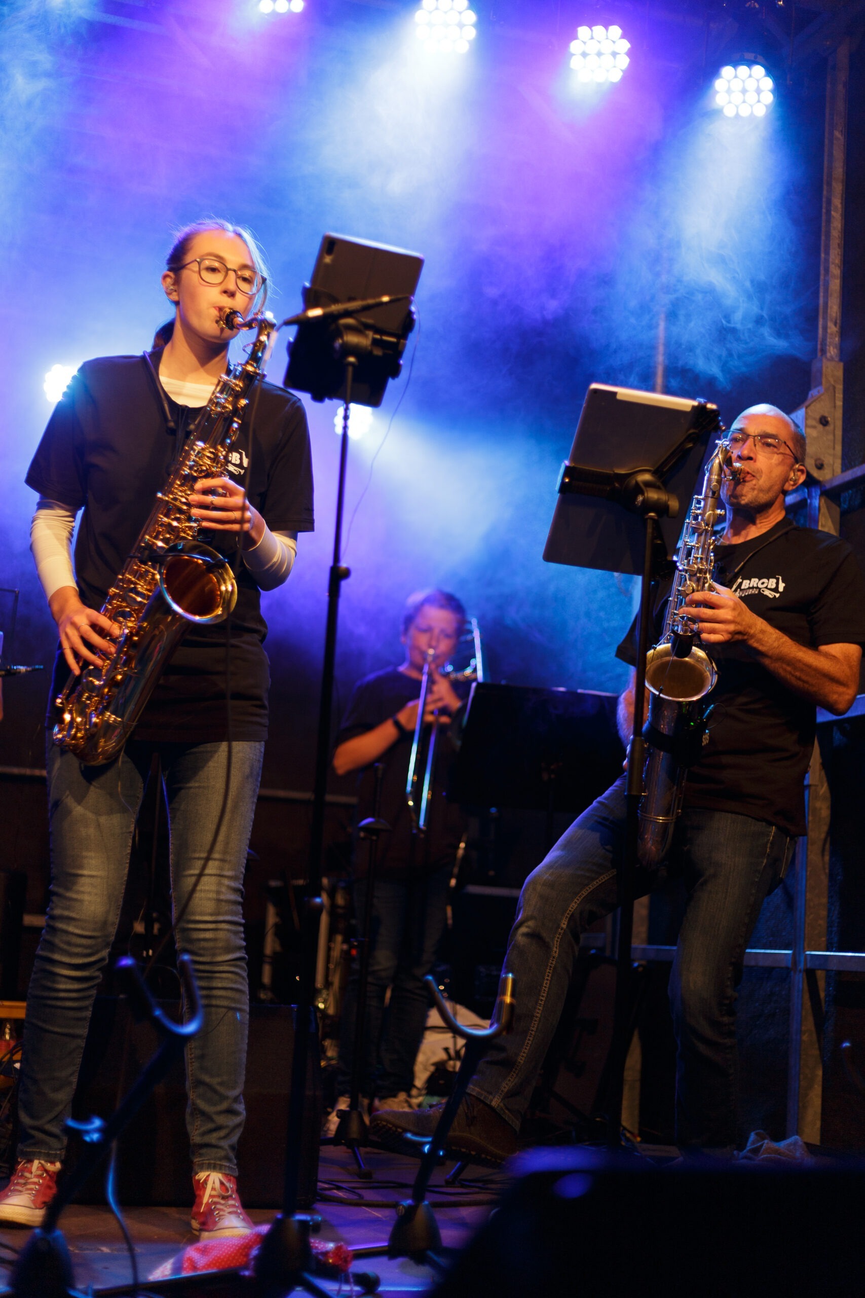 Wir, der Harmoniesatz und Luca am Saxophon als Vertretung des Bläsersatzes, hatten viel Respekt vor dem Auftritt, da keiner von uns wusste, was uns genau erwarten wird.