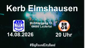 Am Freitag, den 13. August 2026, ist es wieder so weit: Die BigRoundCityBand kehrt zurück auf die Kerb in Elmshausen – und wir haben richtig Bock auf Runde zwei! Nach unserer Premiere im letzten Jahr war für uns sofort klar: Wir kommen wieder!